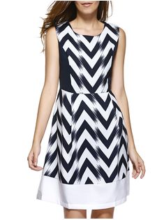 时尚之字形条纹和火焰无袖连衣裙的妇女